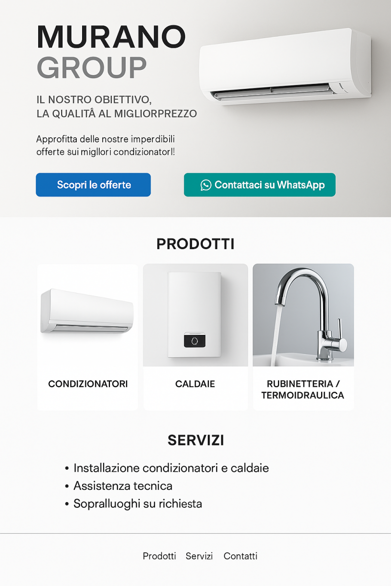 Benvenuti nella sezione del negozio del nostro sito web Murano Group. Qui potrai trovare una selezione dei nostri migliori prodotti di termoidraulica, ferramenta e arredo bagno. Scegli la categoria di interesse e scopri i prodotti disponibili.